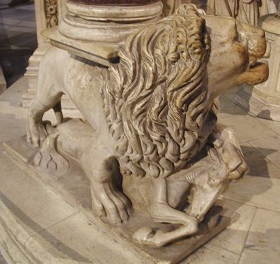 Lion avec un cheval Chaire du Duomo (cathédrale) de Pise |