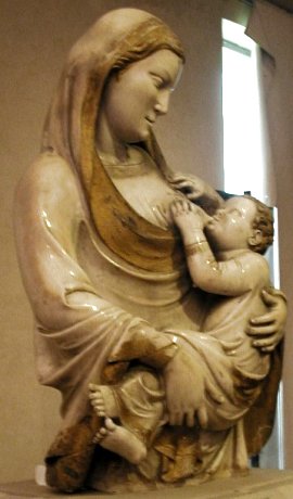 Au début du XIIIè Frédéric II de Hohenstaufen tente de rendre à la sculpture de L'Italie du Sud le réalisme et la noblesse antique. http://www.stupormundi.it/index.htm C'est dans l'école de Pise que naît le premier grand mouvement de sculpture italienne qui abandonne sous l'influence française les moules byzantins. Nicolas Pisano (1220-1284) en est l'initiateur (chaire des baptistères de Pise et du dôme de Sienne, fontaine de Pérouse). Son fils Giovanni Pisano (1245-1320) ajoute à la grandeur calme de son père la beauté expressive (Chaire de Saint André de Pistoia 1301, chaire du dôme de Pise 1310, chapelle des Scrovegni à Padoue). L'école pisane connaît une grande diffusion à Bologne avec Fra Guglielmo (1240-1313, tombe de Saint Dominique), à Rome avec Arnolfo di Cambio (1285ss), à Florence avec Tino di Camaino (1321ss), Andrea da Pontedera dit Andrea Pisano ( 1348, Portes du Baptistère, Campanile). Andrea di Cione dit « Orcagna » (Tabernacle d'or de San Michele 1359) et Nino Pisano, fils d'Andrea (1348-1368) travaillent à Pise. A Sienne se forme une école pisane avec Tino di Camaino, Agostino di Giovanni, Gani di Fazio, Lorenzo Maitani (Bas-reliefs d'Orvieto). A Naples se créé un style local encore avec Tino di Camaino, Giovanni et Pacio. En Lombardie l'art pisan arrive avec Giovanni di Balduccio. En Vénétie l'influence de Nino Pisano agit sur les frères delle Masegne et de Sanctis. Puis les Buon orneront San Marco et le Palais des Doges. (Ref : Art - L\'art gothique (B Encyclopédie) Le Trecento correspond au XIVe siècle italien ; ou la "Pré-Renaissance" . Période qui sera marqué par l'abandon progressif du de l'art byzantin et par l'apparition d'un style nouveau associé à la Rome antique. Giotto, peintre et architecte toscan de la fin du Moyen âge et auteur de fresques de la vie de saint François à Assise, il sera l'un des précurseurs de cette "Renaissance". Nino Pisano (vers 1349 - 1368 ?), fils d'Andrea Pisano. Nino Pisano, maître dans l'art du modelé (ronde-bosse). Il exécutera de nombreuses sculptures à Pise, parmi lesquelles un Monument à l'évêque Scherlatti conservé dans le Musée del Duomo de Pise ; Monument funéraire en marbre Carrare de l'Archevêque de Pise Francisco Moricotti, conservé dans le Musée del Duomo de Pise ; pour Santa Maria della Spina une vierge en buste allaitant, conservé dans le Musée nationale di San Matteo de Pise. Un émouvant Christ aux Liens, conservé dans le Musée nationale di San Matteo de Pise. Une Annonciation, auparavant dans l'église de Sainte Catherine, qui se trouve maintenant à la National Gallery of Art de Washington. Il travailla sur les sculptures de la Basilique de San Zanipolo à Venise. Réalisa quelques panneaux du Campanile de Giotto de Santa Maria del Fiore, à Florence et succéda à son père dans les travaux de la Cathédrale d'Orvieto en 1349. Le critique John Pope-Hennessey qualifiera Nino Pisano de "plus grand sculpteur monumental italien de la moitié du XIVème siècle" (Italian Gothic Sculpture, 1985, page 278). Nino Pisano possède une douceur de travail qui annonce la Renaissance. Ref : John Pope-Hennessey. Nino Pisano de "plus grand sculpteur monumental italien de la moitié du XIVème siècle" (Italian Gothic Sculpture, 1985, page 278). Charles Avery. "La sculpture florentine". Édition Références. Art. Le livre de poche. 1996. Giorgio Vasari. "Les vies des meilleurs peintres, sculpteurs et architectes". Édition Actes Sud.2005. Christiane Klapisch-Zuber. "Les maîtres du marbre. Carrare 1300-1600". S.E.V.P.E.N. 1969. |